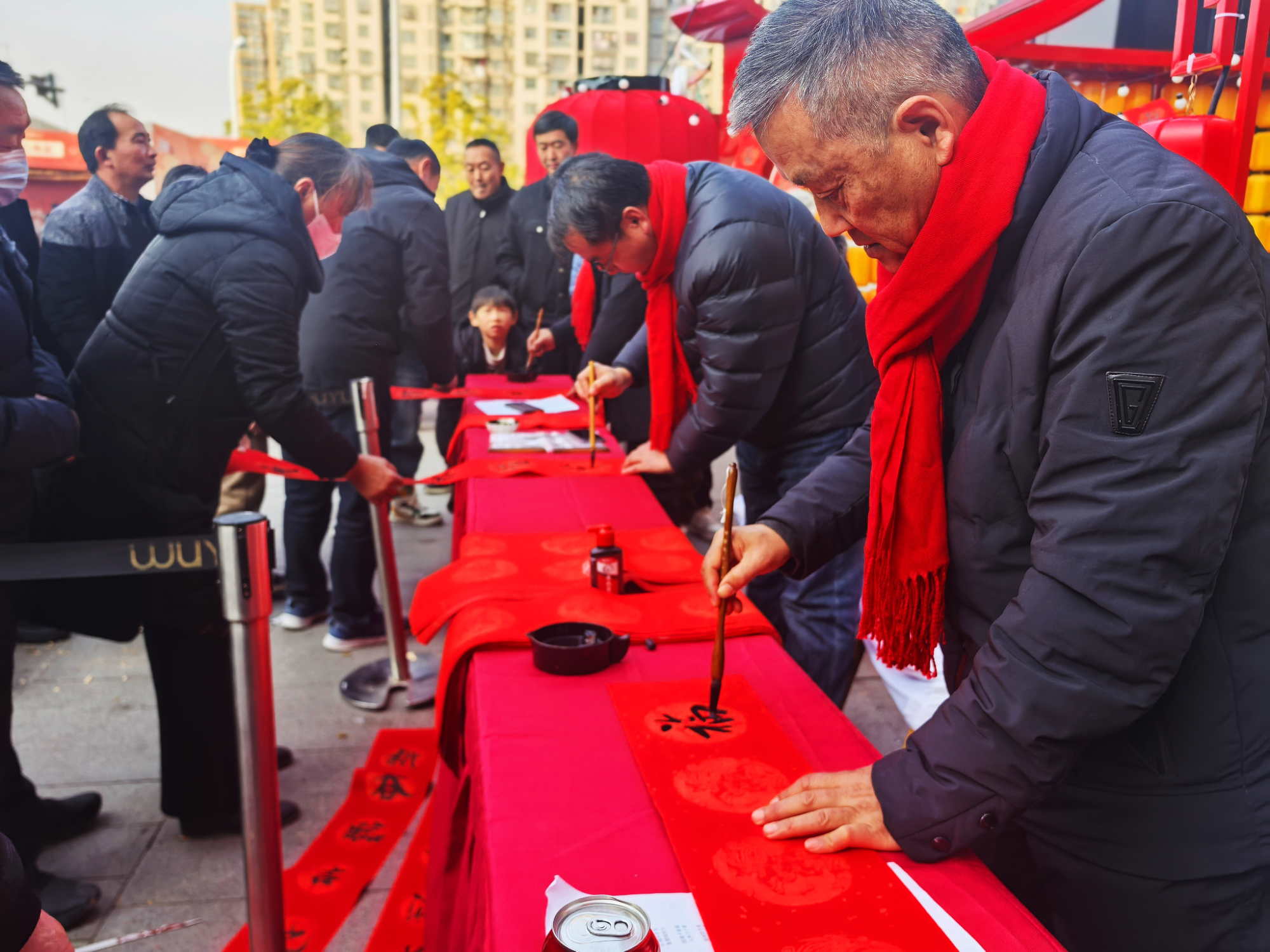 与舞台的热烈相呼应,一旁的年货市集同样人气爆棚。香气扑鼻的坚果炒货、绿色地道的农特产品、惟妙惟肖的非遗手作……从年货专供、老字号美食、助农特产,到外贸优品、肥东非遗文创、景区推介,再到新春送岗、家政服务、中医义诊,九大类别近百个展位升腾着浓浓烟火气。市民穿梭其间,边逛边试吃,边选购心仪的年货,乐此不疲。书法家们挥毫泼墨,义务书写的春联成了最受欢迎的“祝福伴手礼”。